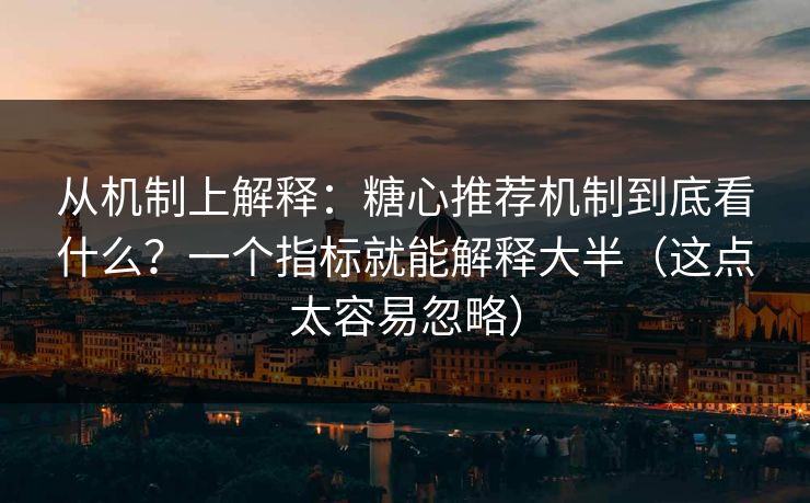 从机制上解释:糖心推荐机制到底看什么?一个指标就能解释大半(这点太容易忽略)引子短视频、内容平台和电商推荐越来越像一个“精准喂饭”的机器:它微调每一...
